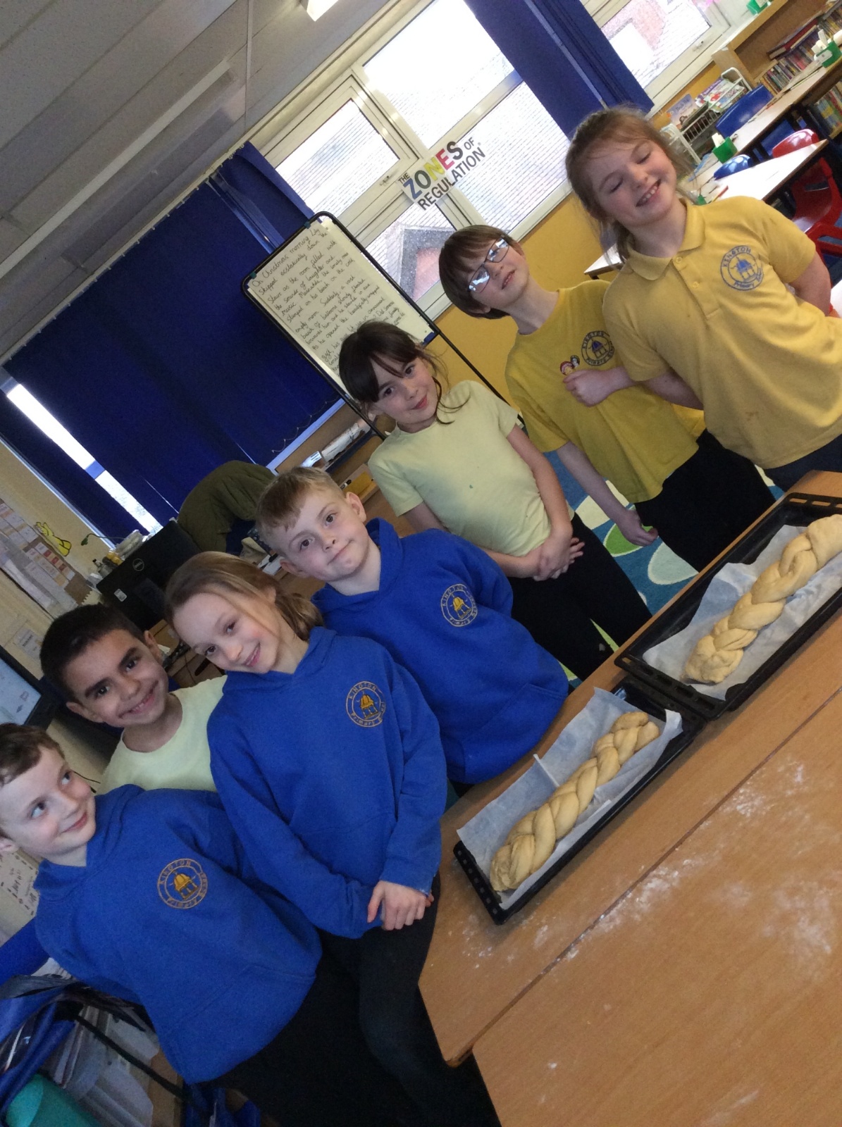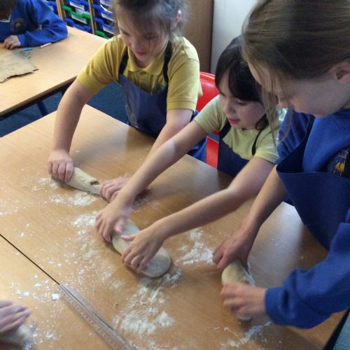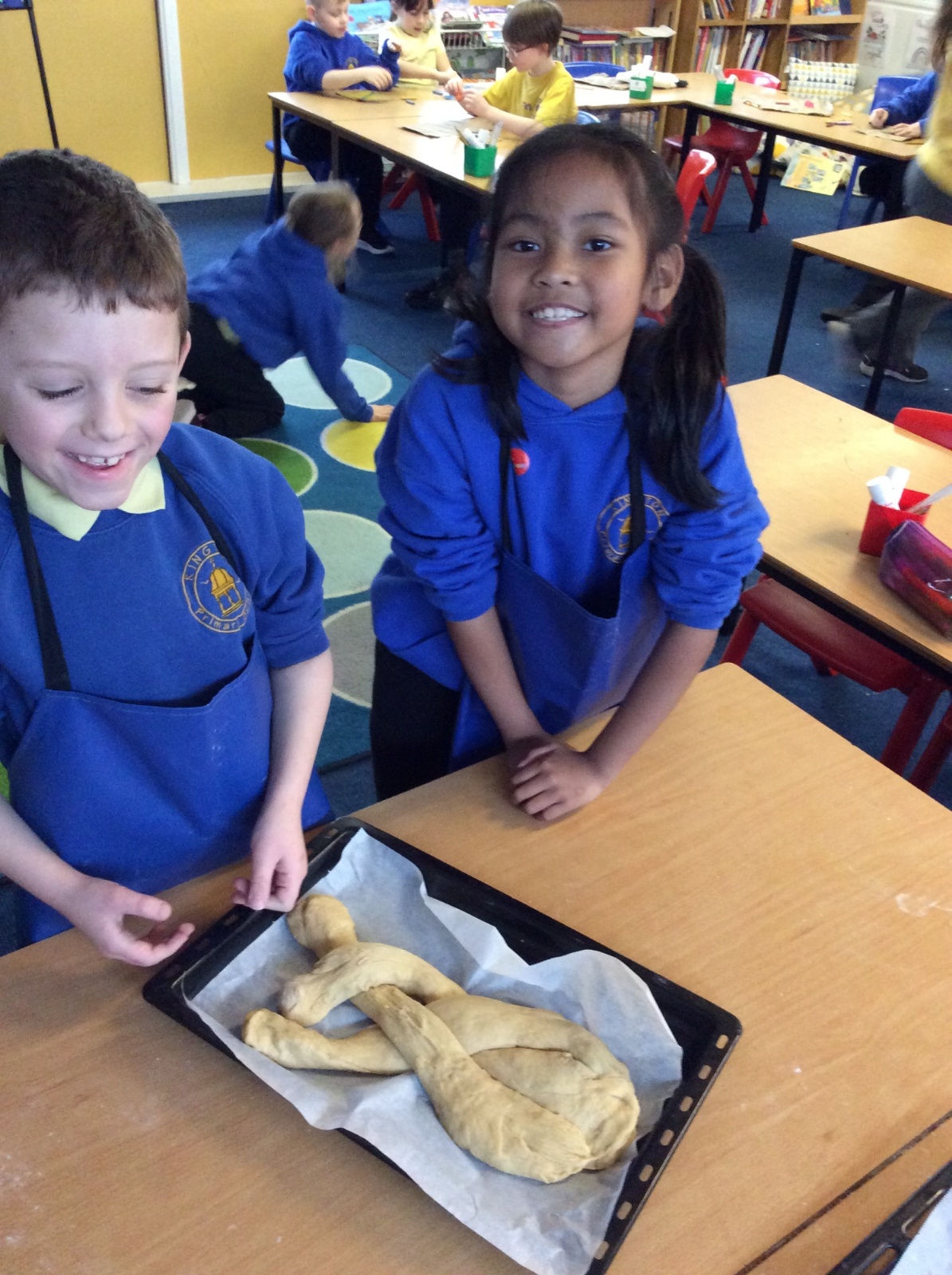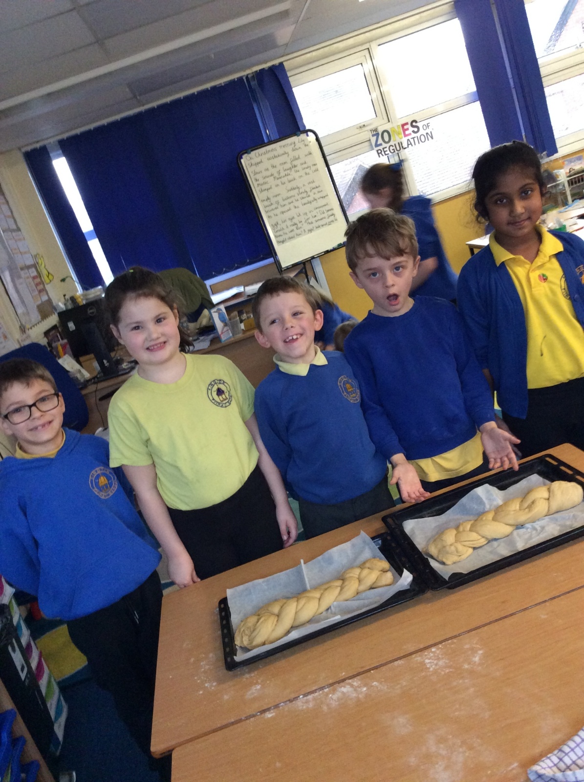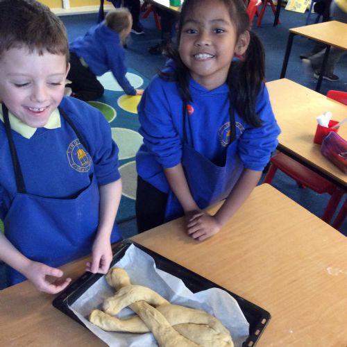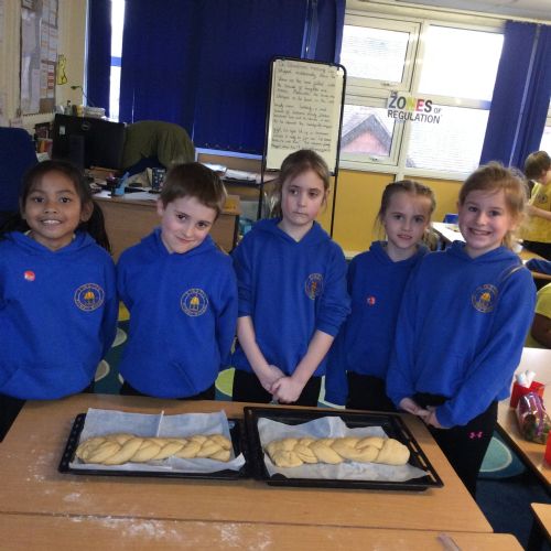 In RE, we explored Jewish traditions by making challah bread. We learned that the braided loaf is shared at Shabbat meals with family and friends. We worked carefully to follow the recipe and create our own beautiful loaves.