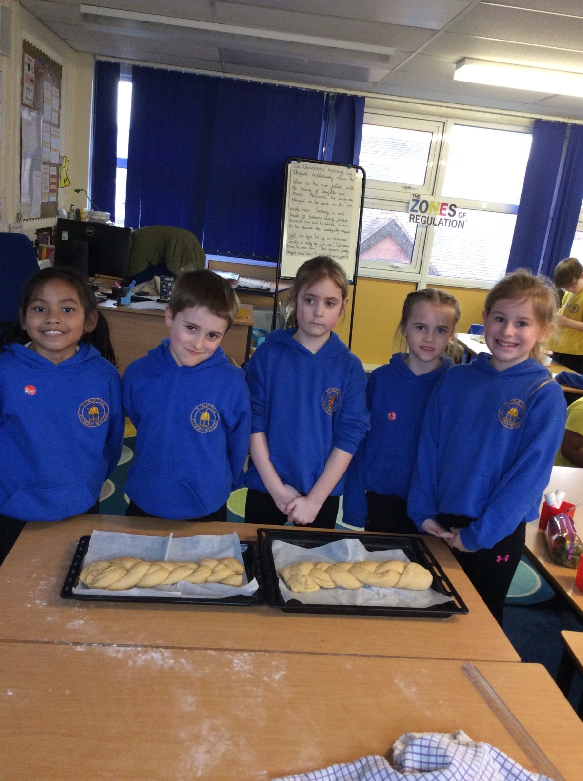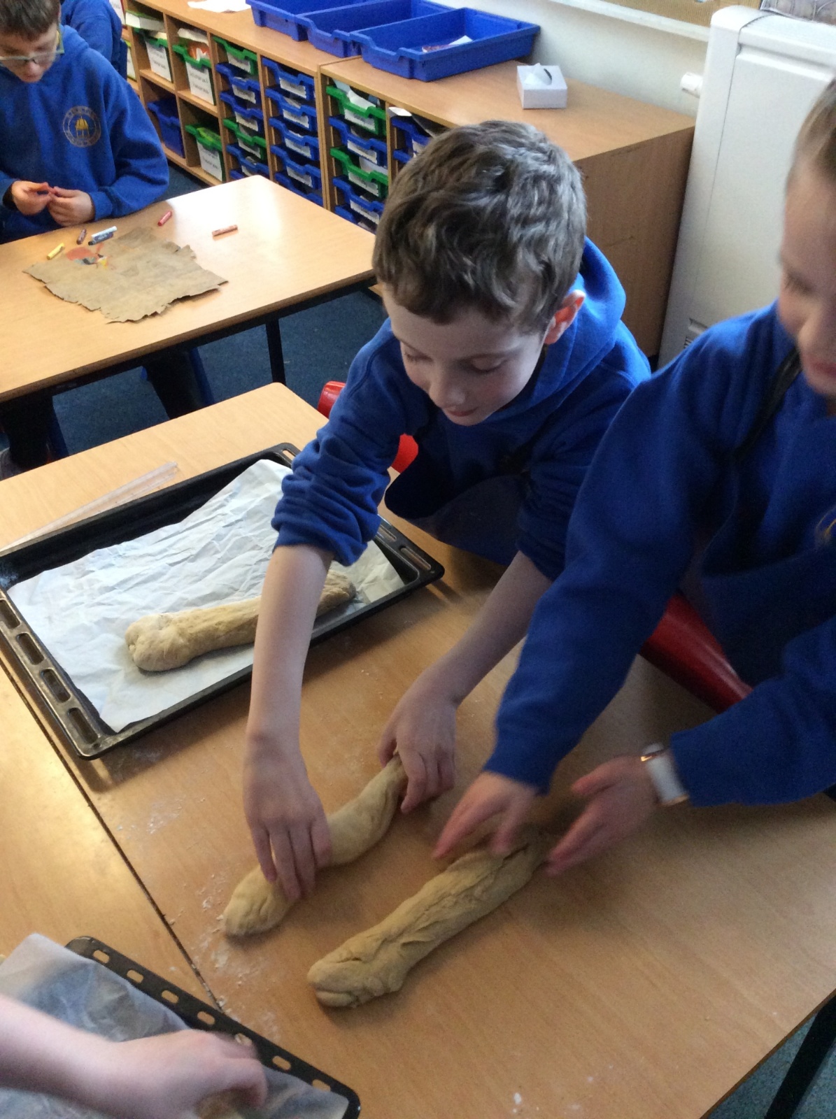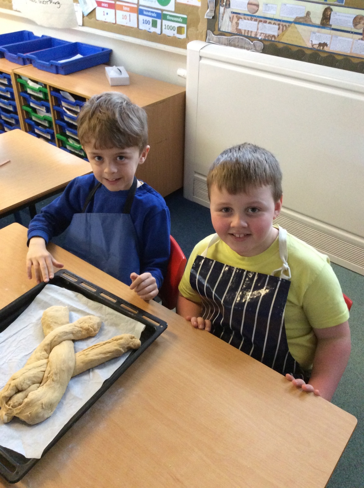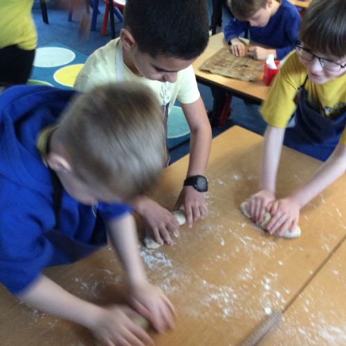 In RE, we explored Jewish traditions by making challah bread. We learned that the braided loaf is shared at Shabbat meals with family and friends. We worked carefully to follow the recipe and create our own beautiful loaves.