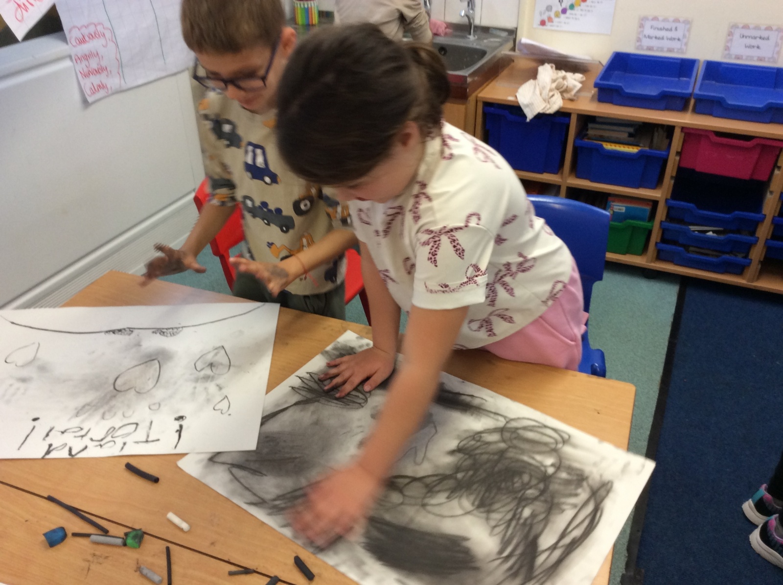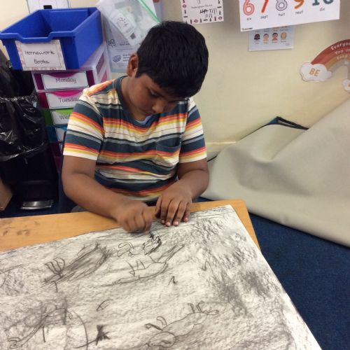 Exploring charcoal and mark-making in art.