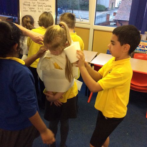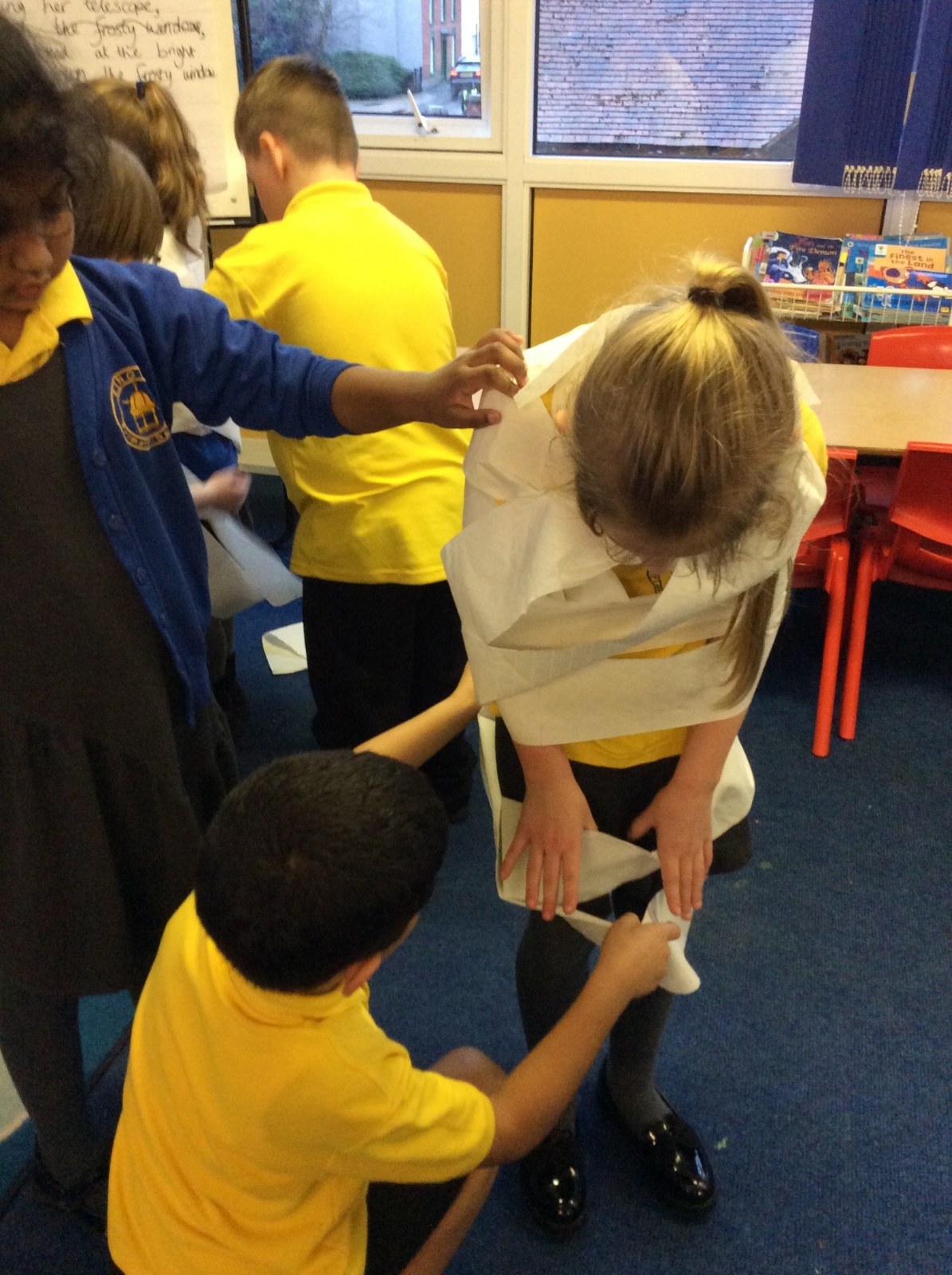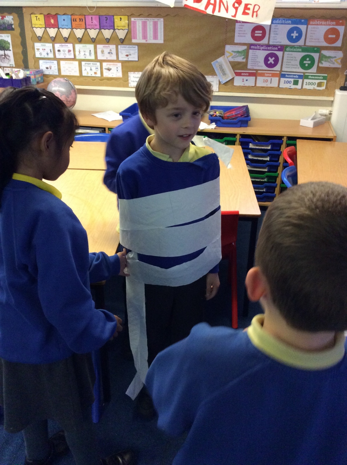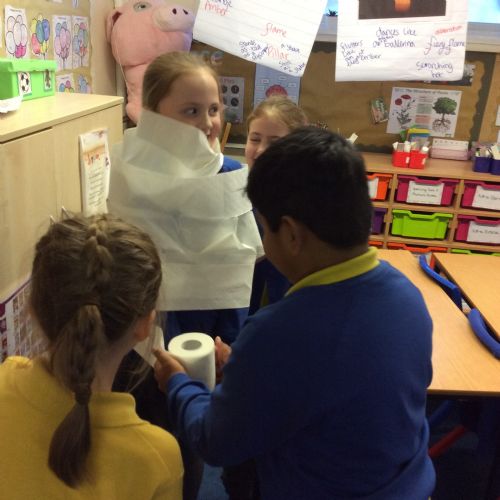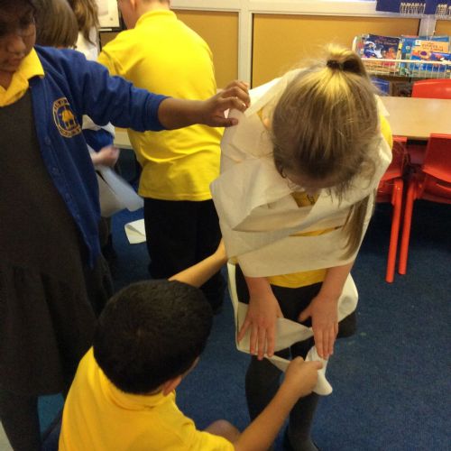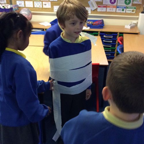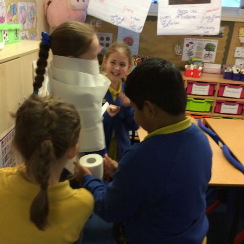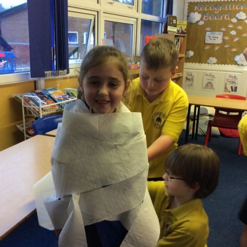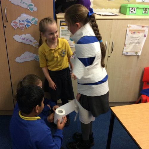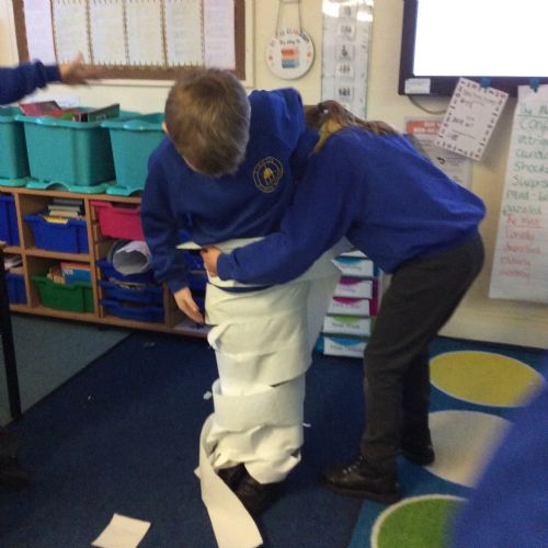We’ve been getting our hands busy learning all about how mummies were made in Ancient Egypt. As a challenge, the children worked in teams to try out mummification techniques for themselves, carefully wrapping a very brave volunteer from their group! The activity tested their teamwork, communication and problem-solving skills and brought lots of laughter along the way. A brilliant way to bring history to life! 🏺✨