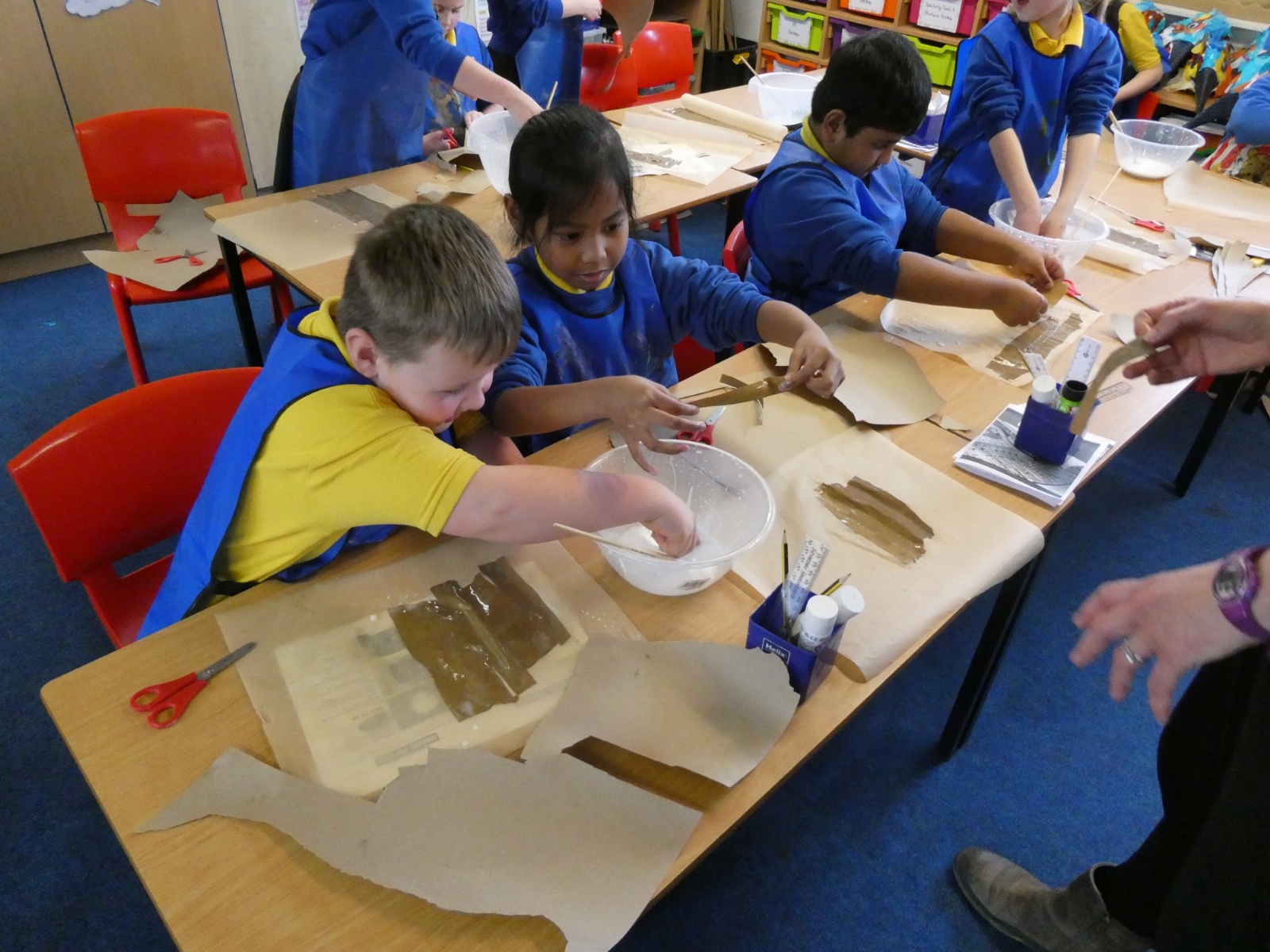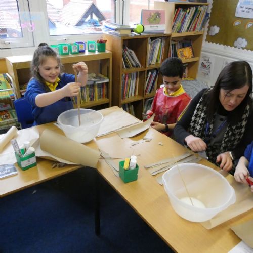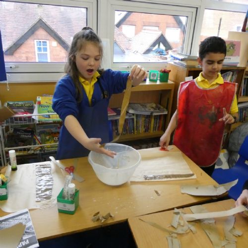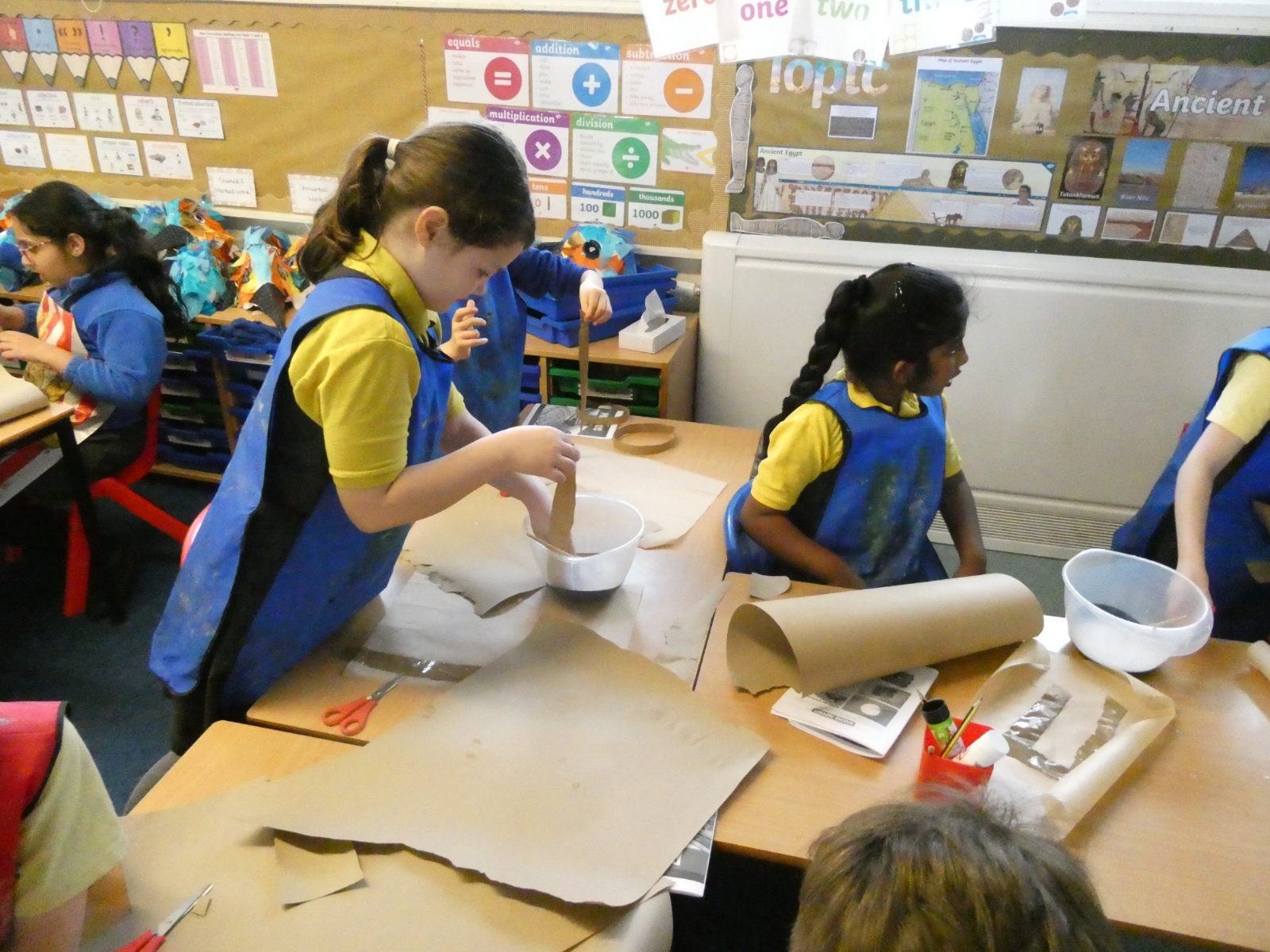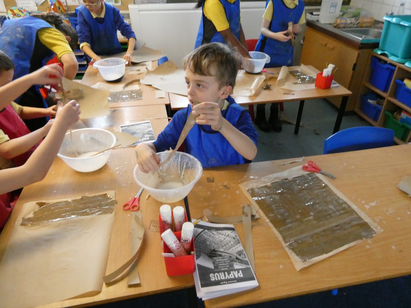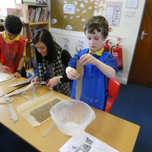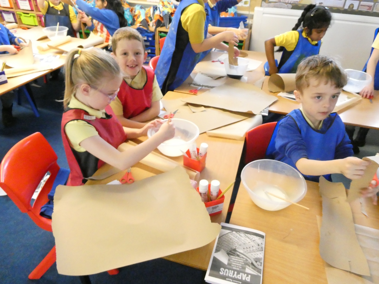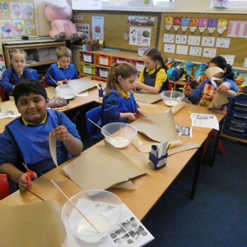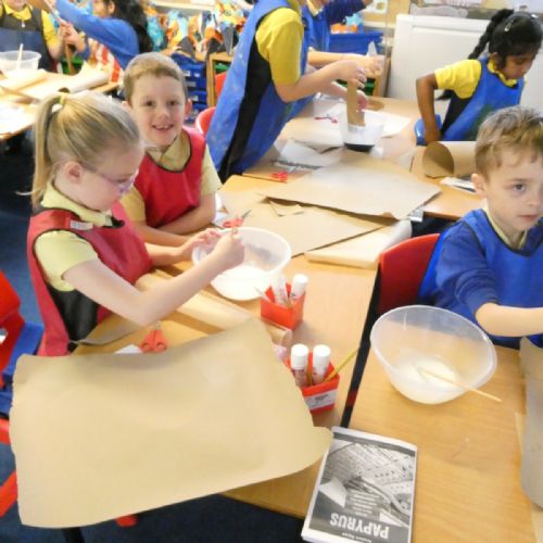 Year 3 stepped back in time to Ancient Egypt this week! We had so much fun creating our own ‘papyrus’ using brown paper, just like the Ancient Egyptians used for writing and drawing. The classroom was full of creativity as we layered, glued and designed our own ancient-style masterpieces!